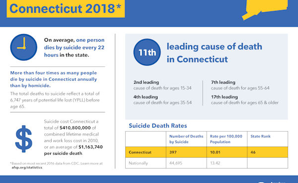 Suicide is the tenth leading cause of death in the United States and the 12th leading cause of death in Connecticut.