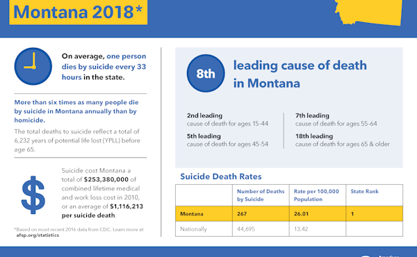 Suicide is the tenth leading cause of death in the United States, and it is the sixth leading cause of death in Montana.