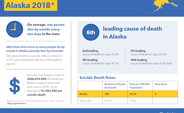 Suicide is the tenth leading cause of death in the United States and the fifth leading cause of death in Alaska.