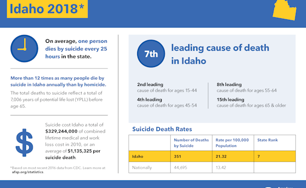 Suicide is the tenth leading cause of death in the United States and the seventh leading cause of death in Idaho.