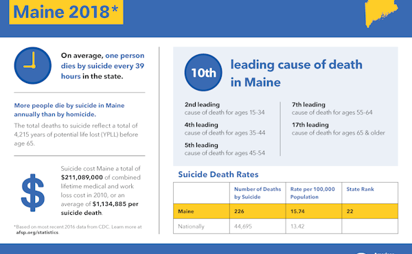 Suicide is the tenth leading cause of death in the United States and the ninth leading cause of death in Maine.