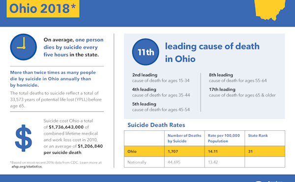 Suicide is the tenth leading cause of death in the United States and the eleventh leading cause of death in Ohio.