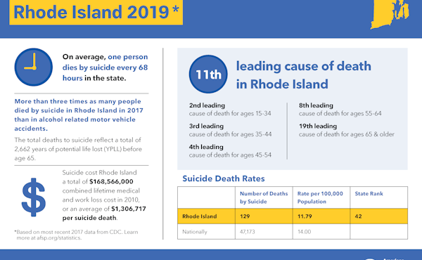 Suicide is the tenth leading cause of death in the United States and the 11th leading cause of death in Rhode Island.