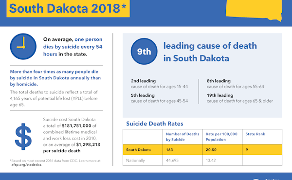 Suicide is the tenth leading cause of death in the United States, and it is the ninth leading cause of death in South Dakota.